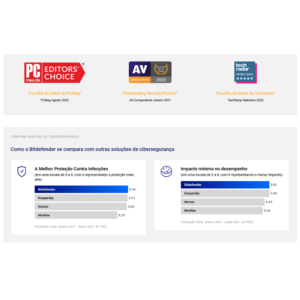 A Bitdefender supera todos os outros tipos de software de segurança nas categorias de Melhor Proteção e Menor Impacto no Desempenho. Proteja os seus dispositivos contra malware sem comprometer a velocidade.