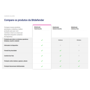IMPORTANTE: Por se tratar de um serviço DIGITAL, em razão de suas características técnicas, após RECEBIMENTO da Chave (licença), não é possível o cancelamento e/ou desistência da compra. Bitdefender coloca seu suporte técnico a disposição para eventuais problemas.